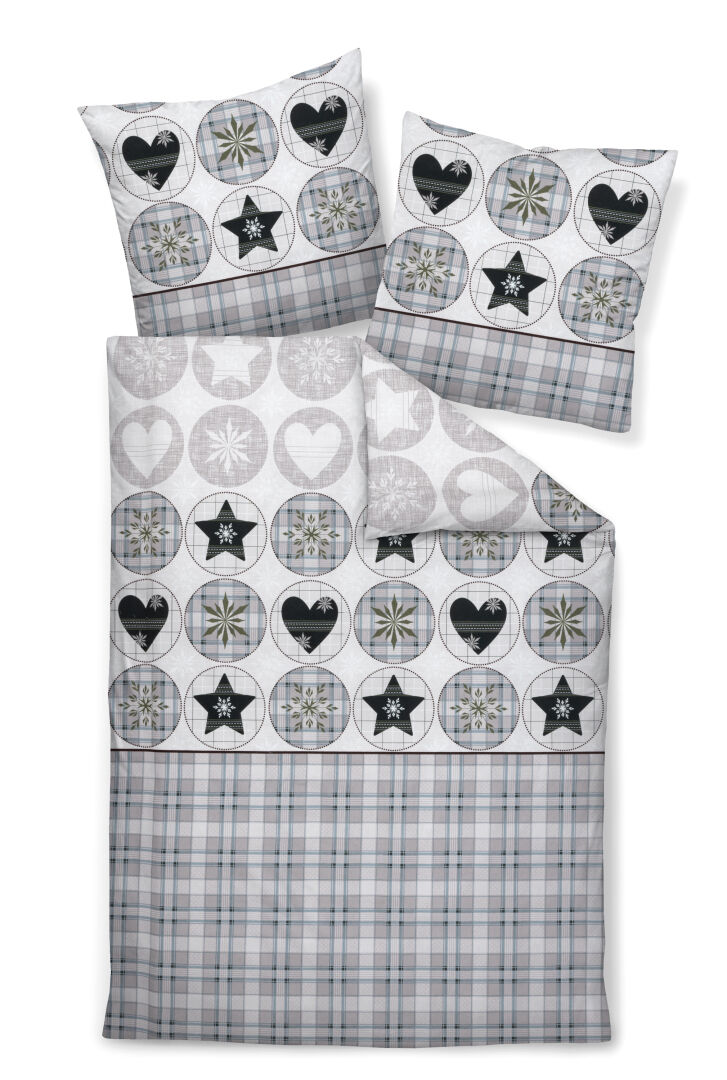Die Janine Feinbiber Bettwäsche Davos 65179, aus der aktuellen Herbst-/ Winterkollektion von Janine, verzaubert mit einem winterlichen Design in Grün und Mauve. Im unteren Bereich der Bettwäsche sorgt ein klassisches Karomuster für modernen Charme, darüber reihen sich verspielte Kreise mit zarten Sternen- und Herzmotiven aneinander. Das harmonische Zusammenspiel verleiht der Bettwäsche von Janine eine anmutige Ausstrahlung, während das hochwertige Feinbiber für wohlige Wärme und höchsten Komfort sorgt.