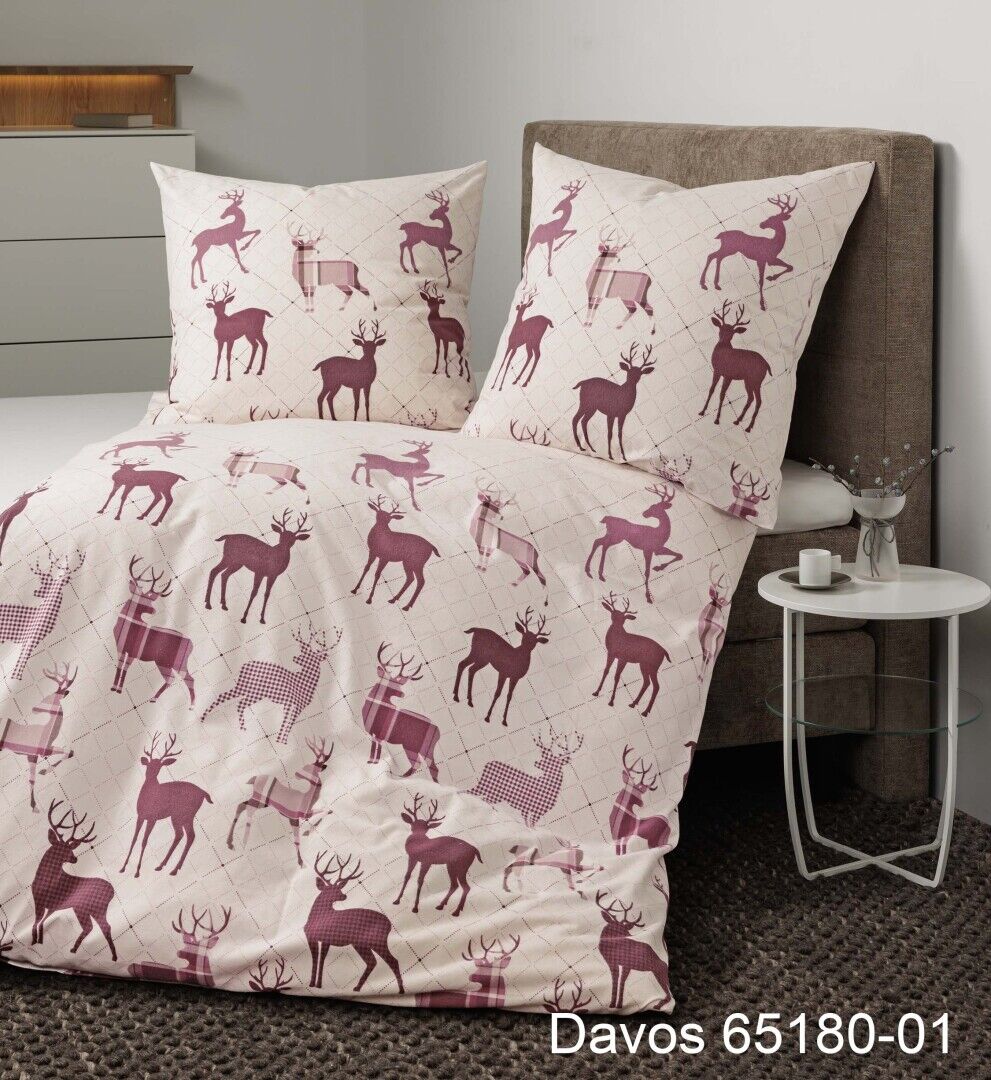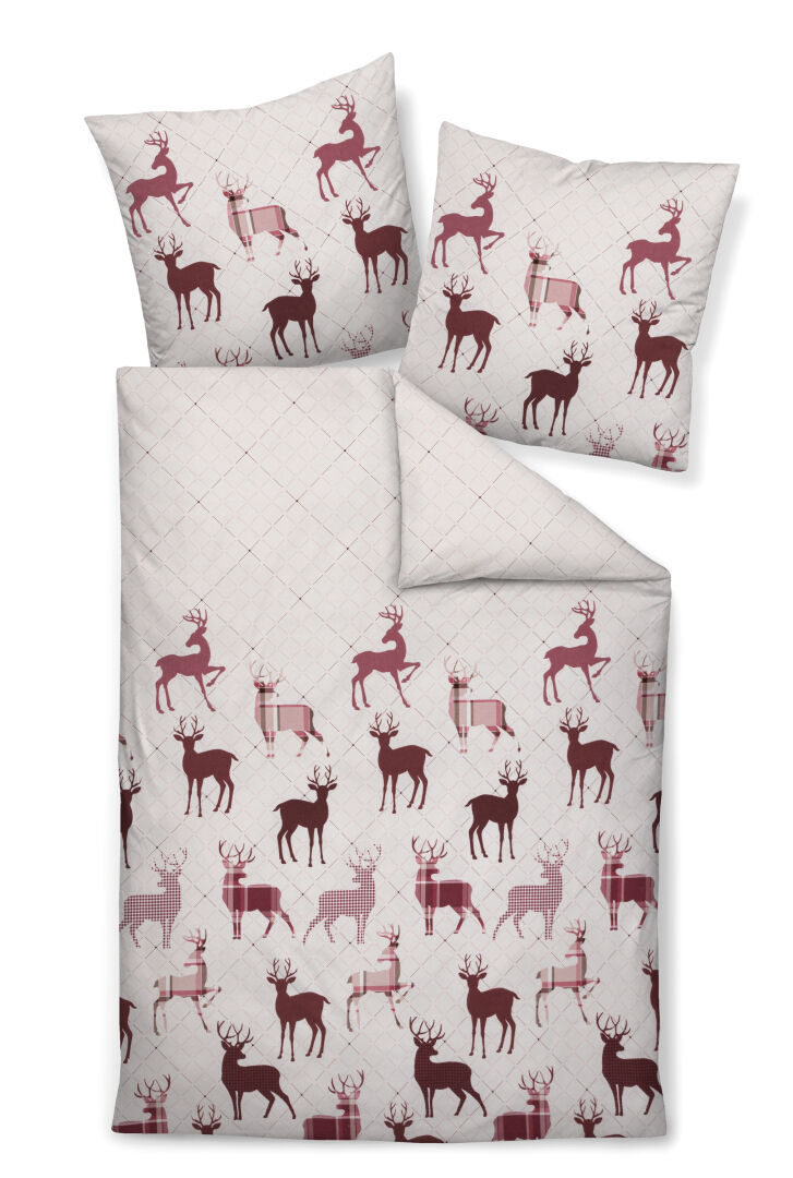 Die Janine Feinbiber Bettwäsche Davos 65180, aus der aktuellen Herbst-/ Winterkollektion von Janine, bringt winterliche Gemütlichkeit in Ihr Schlafzimmer. Auf einem beigen Untergrund tummeln sich Rentiere in Bordeauxrot, während sich beim genaueren Hinsehen ein dezentes, grafisches Muster offenbart. Kombinieren Sie die Bettwäsche von Janine mit jeglichen Einrichtungsstilen und genießen Sie die gemütliche Atmosphäre in Ihrem Schlafzimmer. Gefertigt ist die Bettwäsche aus hochwertigem Feinbiber. Der Stoff legt sich angenehm weich auf Ihre Haut und bettet Sie besonders in kalten Winternächten wohlig warm.