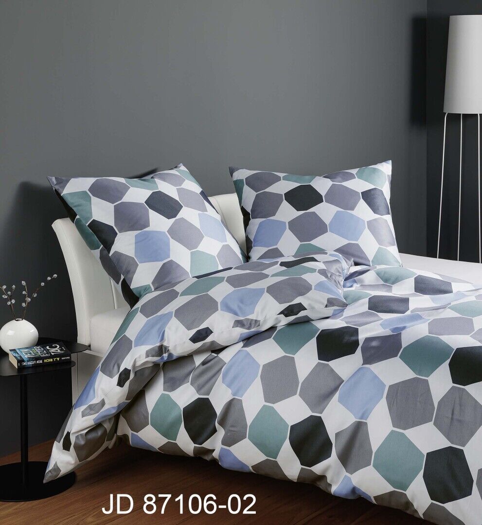 Ein modernes Statement in jedem Zimmer: Die Janine Mako-Satin Bettwäsche J. D. 87106, aus der aktuellen Herbst-/ Winterkollektion von Janine, überzeugt mit einem grafischen Design. Abgerundete Vierecke in verschiedenen Blautönen bilden ein spannendes Muster, das durch weiße Zwischenräume aufgelockert wird. Der coole Look passt ideal in modern eingerichtete Schlafzimmer und sorgt für ein stilvolles Ambiente. Den letzten Feinschliff erhält die Bettwäsche von Janine durch den seidigen Schimmer des Mako-Satins und dessen Eigenschaften. Das hochwertige Material legt sich sanft und wunderbar weich auf Ihre Haut und garantiert höchsten Komfort.