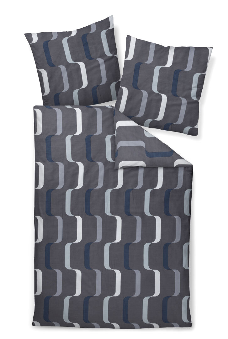 Janine Mako-Satin Bettwäsche J. D. 87107 anthrazit blau