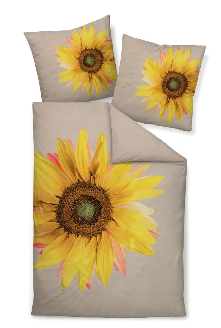 Ein echter Hingucker ist die Janine Mako-Satin Bettwäsche modern art S 42162 aus der aktuellen Frühjahrs-/ Sommerkollektion von Janine. Auf einer sandfarbenen Basis hebt sich eine einzelne, großflächige Sonnenblume in leuchtendem Gelb wirkungsvoll ab und zieht sofort alle Blicke auf sich. Das natürliche Design der Bettwäsche versprüht sofort gute Laune und weckt echte Sommergefühle. Veredelt wird die Bettwäsche von Janine von dem seidigen Schimmer des erlesenen Mako-Satins. Das hochwertige Material legt sich angenehm weich und leicht auf Ihre Haut und lädt zum Verweilen ein. Überzeugen Sie sich selbst!