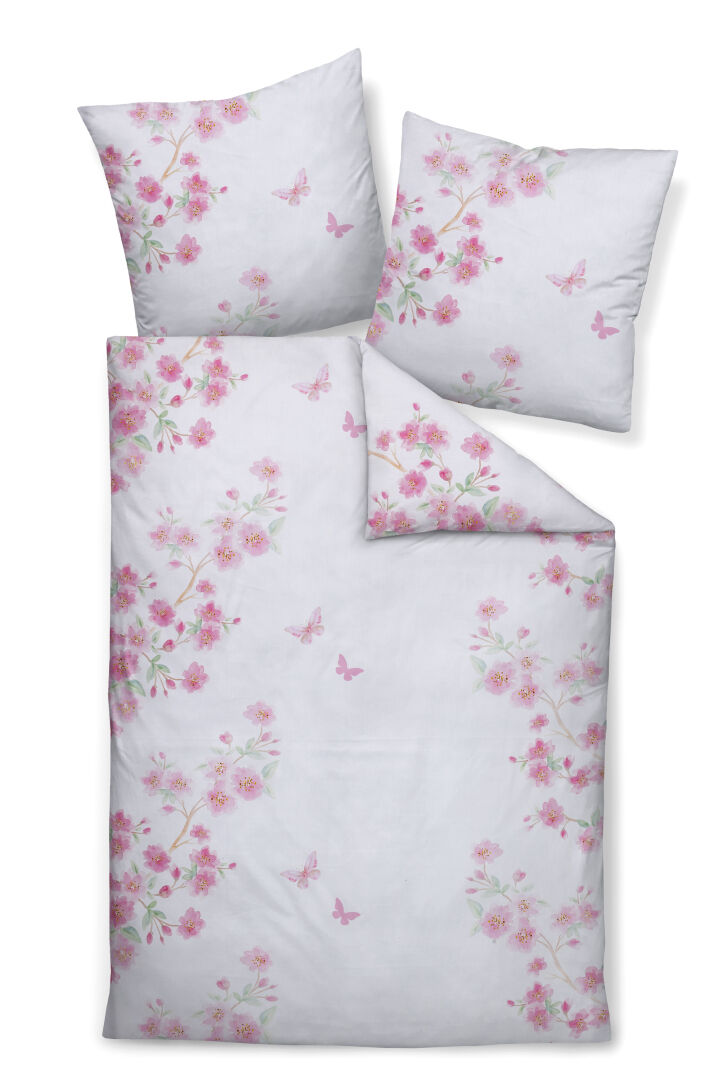Lassen Sie sich fallen in die Janine Mako-Satin Bettwäsche moments 98132 aus der aktuellen Frühjahrs-/ Sommerkollektion von Janine. Ein frühlingshaften Blumenmotiv in zarten Rosatönen schmückt die Bettwäsche, wobei der großzügig weiße Untergrund dem Design eine besondere Leichtigkeit verleiht. Dezente Schmetterlinge ergänzen das florale Muster und sorgen für eine lebendige Ausstrahlung. Die perfekte Wahl für alle, die den Frühling dezent in die eigenen vier Wände einziehen lassen möchten. Gefertigt ist die Bettwäsche von Janine aus hochwertigem Mako-Satin, welches Sie mit seiner weichen und leichten Textur zum hinein Kuscheln einlädt. Überzeugen Sie sich selbst!