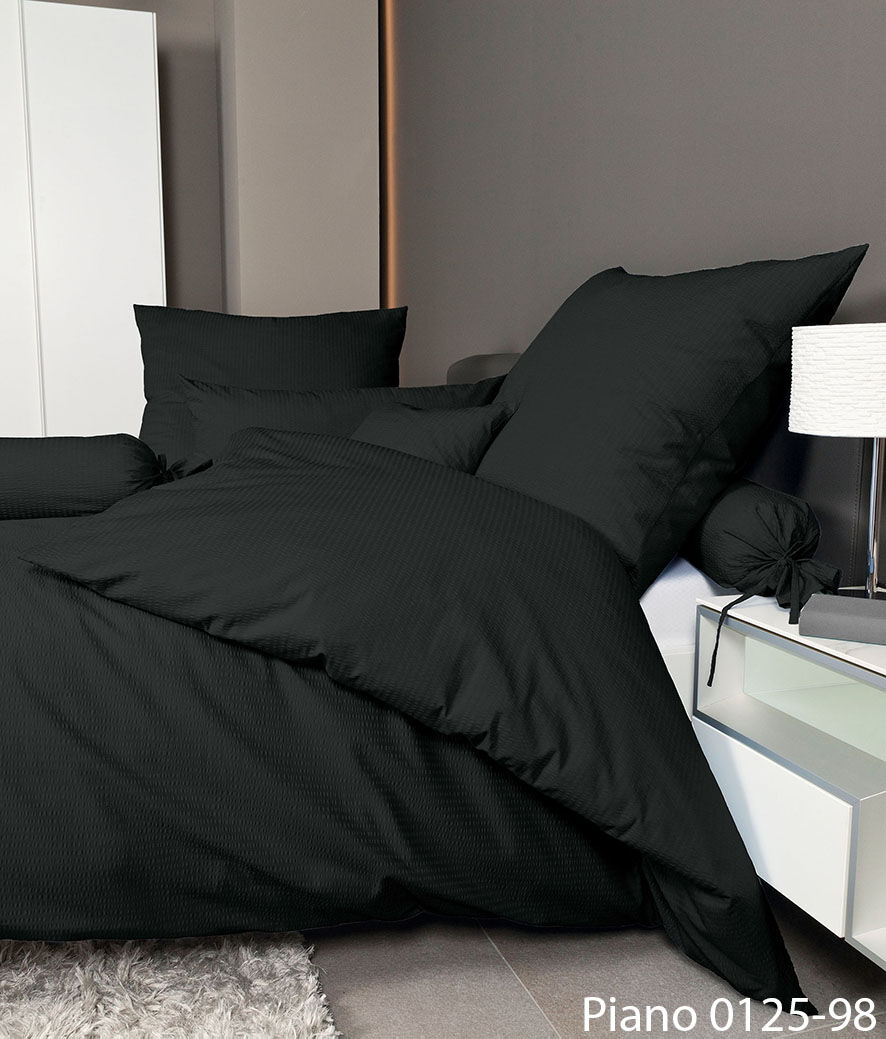 Janine Mako-Soft-Seersucker Bettwäsche PIANO 0125 schwarz